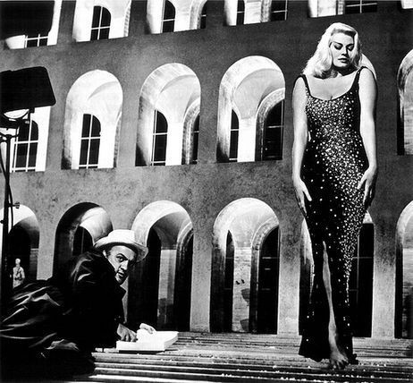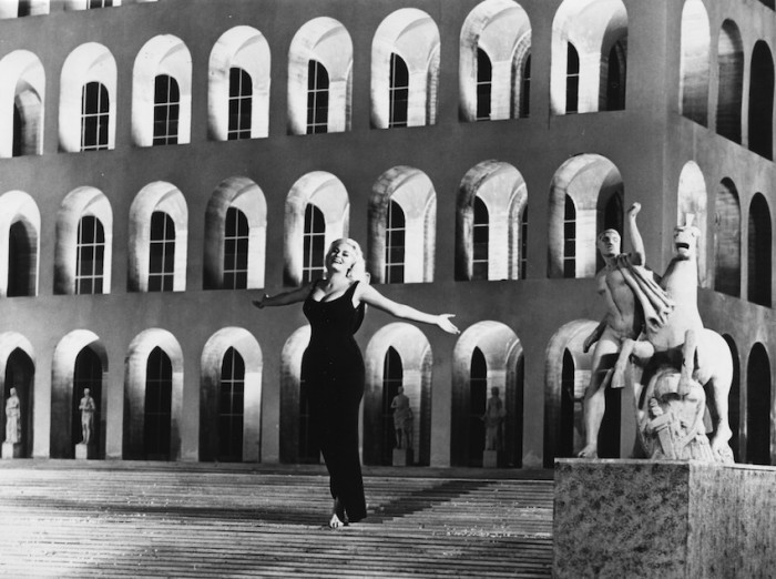 Bölümde izleyicileri şaşırtan bir sahne var; ekranda yansıtılanlar Roma’daki EUR bölgesinin metafiziksel mimarisi; aktris Anita Ekberg anıtsal mimaride gülümseyerek yürüyor ve dans ediyor. Burada yatan mesele; Anita, bir binanın kemerleri kadar uzun. Söz konusu bina, aslen 53 metre yüksekliğindeki Kare Kolezyum olarak da bilinen ve görkemli sahnesinde artık orijinal görünmeyen İtalyan Medeniyeti Sarayı.