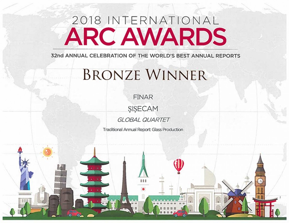 Düzcam, cam ev eşyası, cam ambalaj ve cam elyafı gibi camın tüm temel alanları ile soda ve krom bileşiklerini kapsayan iş kollarında global bir oyuncu olan Şişecam Topluluğu, 2017 yılı Faaliyet Raporu ile bu yıl MerComm tarafından 32.kez düzenlenen ARC’de (Annual Report Competition) “Geleneksel Faaliyet Raporu” kategorisinde ‘Bronz Ödül’e layık görüldü. Yarışmada 34 ülkeden 2194 firmanın faaliyet raporu değerlendirildi.