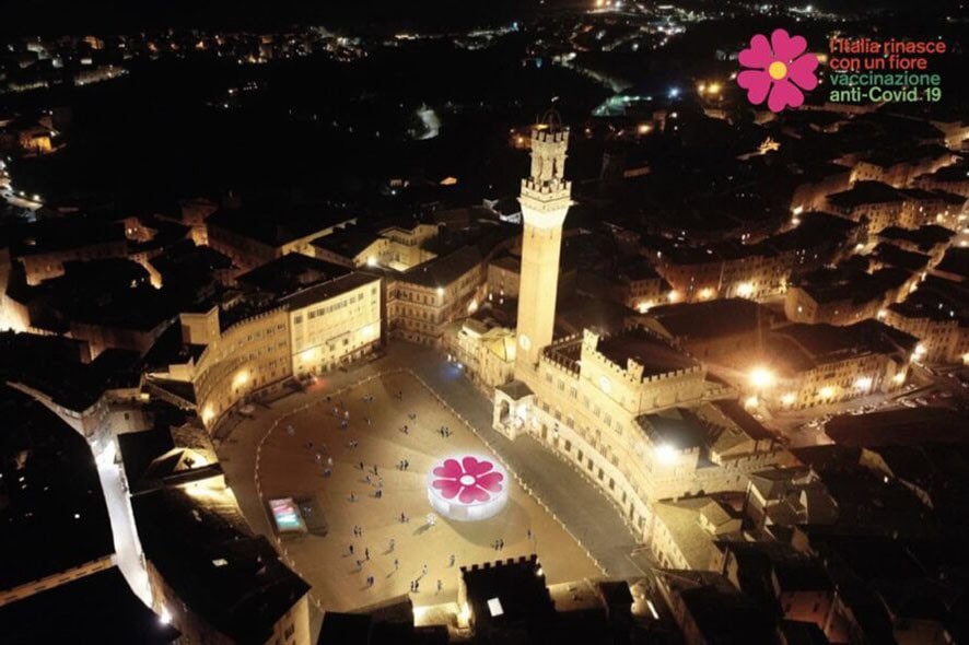 En çok Vertical Forest (Dikey Orman) gökdelenleriyle tanınan Milan merkezli mimarlık şirketi Stefano Boeri Architetti, İtalya’daki COVID-19 aşı kampanyası için mimari ve iletişim ile ilgili konseptler tasarlamak ve geliştirmek için danışmanlardan oluşan bir ekiple ortaklık kurdu. Ücretsiz olarak tamamlanan projenin tüm açıları pembe çuha çiçeği logosu ile birleştirildi ve mottosu “İtalya bir çiçekle hayata dönüyor.” Kampanyaya, İtalya’nın kamusal alanları ve meydanlarında hızlıca açılan aşı dağıtım merkezleri olarak tasarlanan ve güneş enerjisi le çalışan büyük prefabrik çadırların dizaynı da dahil.