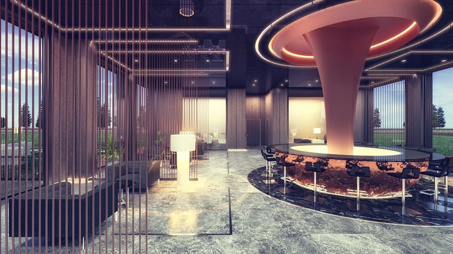 Studio Vertebra, otelin düşük yüksekliklere sahip katlarıyla mücadele etmek adına, yansımalı tavan kaplamalarına yer vermiş ve sarkıt aydınlatma elemanlarından sakınmış. Mimari çizginin net tanımlarına ek olarak otelin lobi, restoran, fuaye gibi ortak alanlarında ekstra bir dokunuşla heyecanı tetiklemek isteyen Studio Vertebra, bu yaklaşımı mekanda mevcut olan taşıyıcı elemanları değerlendirerek elde etmiş.