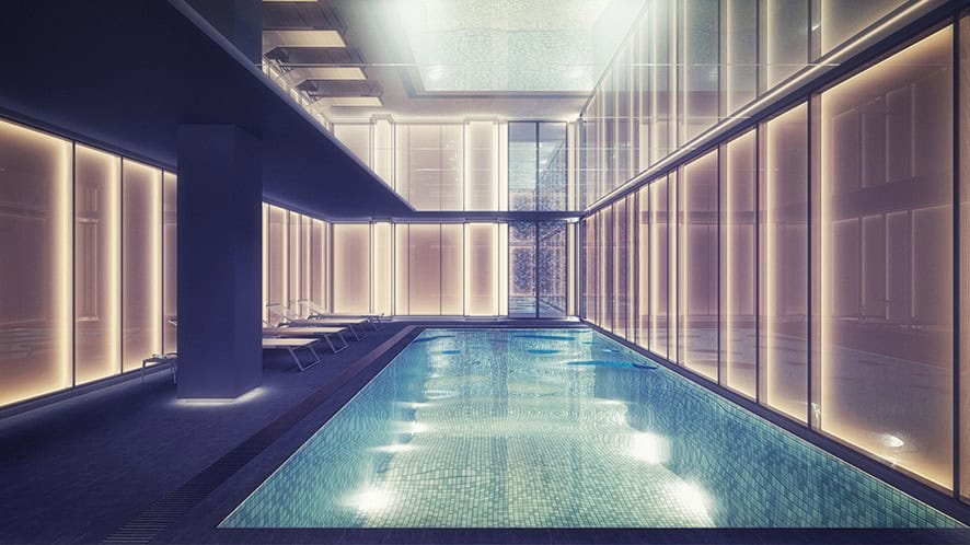 Peyzaj alanında batan bir bahçe yarığı kurgulayarak, doğal hava ve ışığın fuaye, havuz, toplantı alanları, gym ve spa gibi alanlara ulaştırılmasını sağlayan Studio Vertebra, ışık algısını güçlendirmek için iç duvarlara doğal ışık kaynaklarının izlerini takip eden ve duvar yüzeylerini kaplayan özel sıcak cam ışık kutucukları yerleştirmiş. Böylece tasarımda ‘bodrum’ gibi algılanmayan bir bodrum kat elde edilmiş.