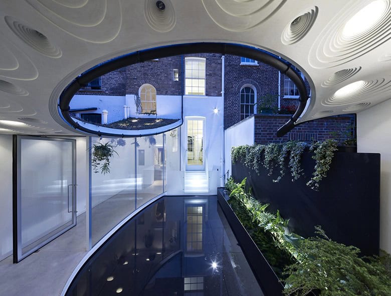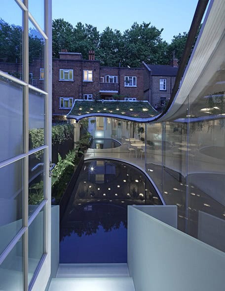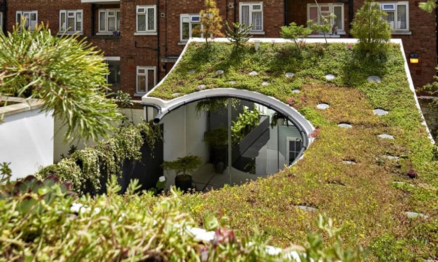 Sun Rain Rooms, Londra’da eski bir konağın uzantısı olarak doğmuş olup yeşil çatısı ve cam panellerle kaplı gri su toplama sistemiyle bir bahçe stüdyosu olmuştur.