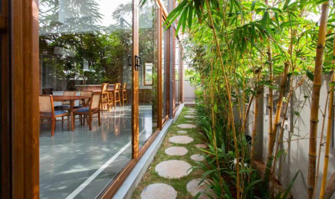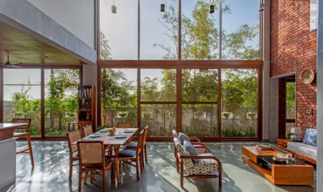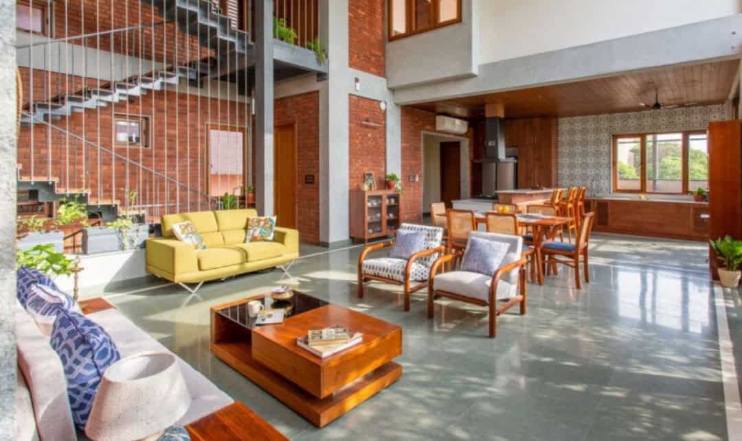 Hindistan’ın Chennai kentinde denize bakan bir adamın kızı için düğün hediyesi olarak inşa edilen ev, sakinlerini bir mahremiyet katmanıyla sarıyor. Otoparkın bir kısmı, yardım odası ve acil durum bataryası yer altına inşa edilmiş ve ev yerden 1,5 metre yüksekte yükseltilmiş. Sürdürülebilir mimari projenin geri kalanı, merkezde geniş bir oda ile evi çevreleyen bahçelerle çevrili.