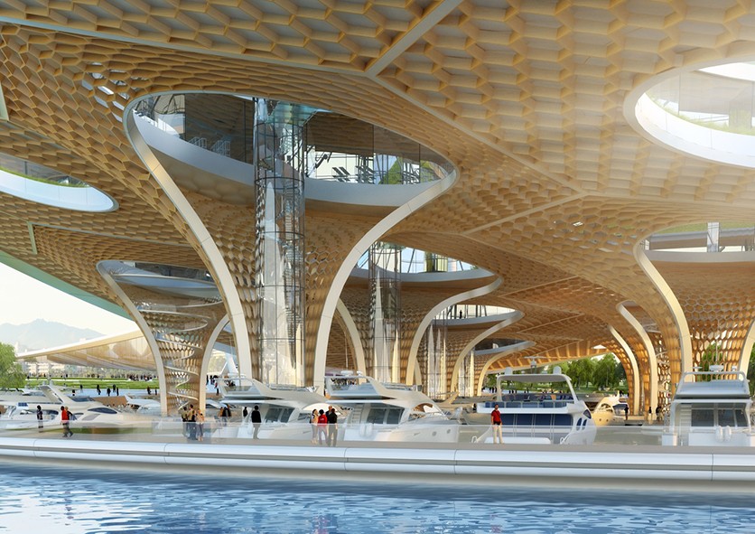 Vincent Callebaut, Güney Kore Seul’de Yeouhido Parkı’nın nehir kıyısında yeni bir tasarım planı geliştirdi. Bu kentsel park alanı feribot iskelesi de dahil olmak üzere bir dizi müdahaleyle sürdürülebilir kalkınmaya adanmış deneysel bir kentsel alan olarak planlanmıştır.