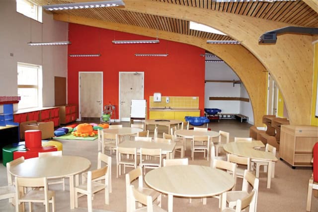 Her sınıfta bir dinlenme/oyun köşesi ve bu mekânla ilişkili bir kış bahçesi bulunmaktadır. Bu kış bahçesi ile yapının ısı kaybı azaltılmış ve çocuklara bitkilendirme yapabilecekleri bir ortam yaratılmıştır.