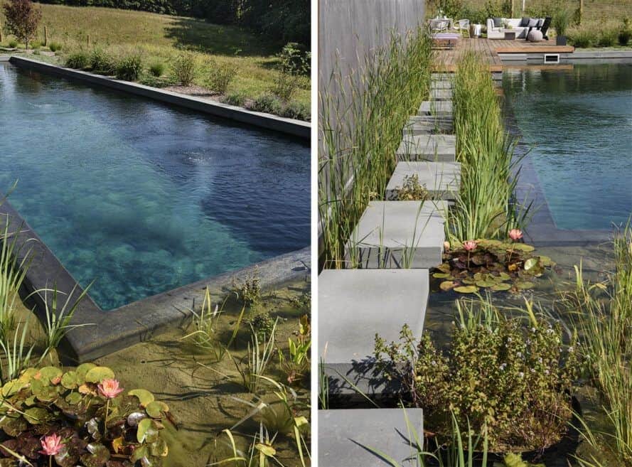 Müşteri, yeni bir yüzme havuzuna istiyordu, ancak mülkünde tasarlanan projelerin çevre dostu olması ve peyzajla sorunsuz bir şekilde uyum sağlaması hem görsel hem de işlevsel olarak onun için önemliydi. Kimyasal içermeyen, daha sağlıklı havuz konseptleri üzerine yapılan araştırmada mekanik olarak filtrelenmiş doğal havuzların Avrupa’da yaygın olduğu fark edildi. Akarsularla beslenen doğal bir göletten farklı olarak, suyun kontrollü bir şekilde mekanik olarak filtrelenebilmesi ve Avrupa’da on yıllardır yaygın ve başarılı bir sistem olması ilgi çeken taraflarıydı.