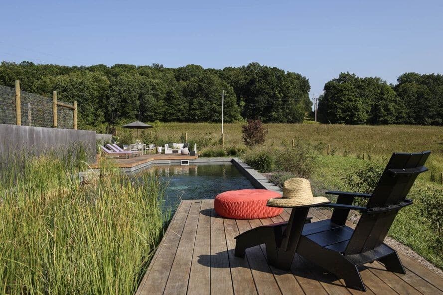 BarlisWedlick’in müdürü Alan Barlis, New York Hudson Valley’de 75 dönümlük bir arazi için doğal bir yüzme havuzu tasarladı. Proje bir ekip işiydi. BarlisWedlick, havuzun, güvertelerin, sert peyzajın ve malzemelerin tasarımına öncülük etti. Havuz oluşturucu Vinny Torcasio ve Biotop, havuz filtreleme / mekanik sistemini tasarladı ve peyzaj mimarı Anthony Archer-Wills, havuzun etrafındaki yumuşak peyzaj ve dikimlerden sorumluydu. Yüzme alanı yaklaşık 16’x62 ′ ve ekilen su bahçesi yaklaşık 14’x20 ′ boyutlarındadır. Yapı, tümü yeni bir geleneksel havuz için tipik olan alçı kaplamalı gunittir (beton esaslı). Su bahçesinde bitkiler bir kum / çakıl yatağına ekilir. Çevredeki güverteler garapa ağacından yapılmıştır.