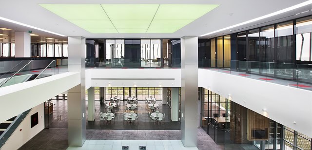 Açık kullanımlı ofis bölümü olarak düşünülen bir üst katta ise galeri ile oluşturulan bütüncül kurgu sayesinde kullanıcının, açık ofis ve giriş katındaki sosyal alanlar arasında kolaylıkla dolaşımı sağlanmış. Kontrollü gün ışığı, çatıda bulunan büyük ışıklıktan ofis katlarına alınmış ve buradan da sosyal alana kadar ulaşması sağlanmış. Bununla birlikte iç-dış algısı kesintisiz bir biçimde desteklenmiş.