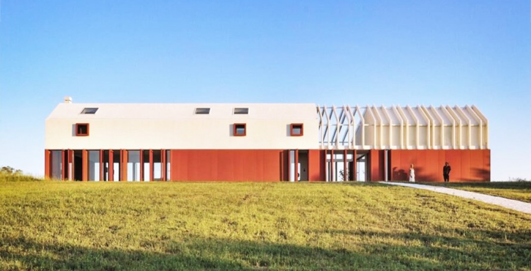 Polverigi’de Ancona’nın hemen dışında yer alan Border Crossing House, geniş buğday alanlarına bakan bir sırt üzerinde yer alıyor. Mimarlara göre, bu pastoral yer, hem kentsel hem de kırsal mimarinin yerel estetiğini ustaca “sınırlamayı” sağlayan tasarımın tonunu belirlemiş.