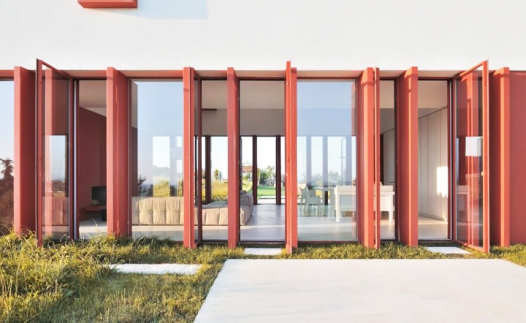 Farklı şekil ve işlevlere sahip sunta çerçeveli pencereler, evle, buğday, arpa, fasulye ve ayçiçeği tarlalarının çarpıcı manzarası arasında kesintisiz bir bağlantı oluşturmanın bir yolu olarak tasarıma dahil edilmiş. Baş mimar Simone Subissati konuyla ilgili şunları söylüyor: “Amacımız, özel yaşam alanının, tarımsal çalışma alanından ayrıldığı geleneksel kalıbı yıkıp, sınırları aşmaktı.”