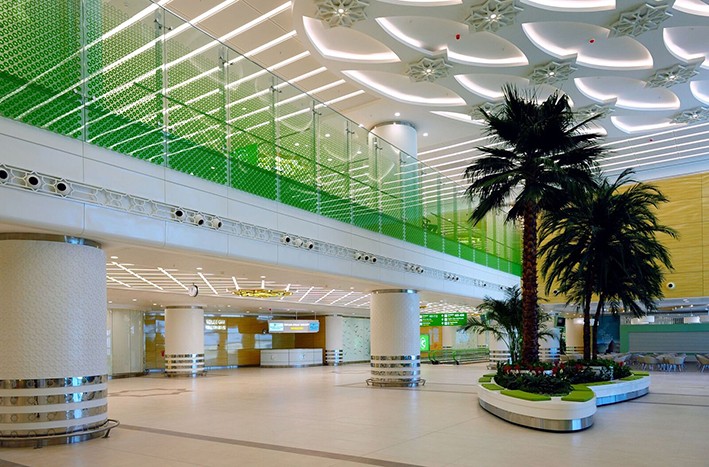 Uygulama projesi ve iç mekan tasarımı Tekeli-Sisa Mimarlık tarafından gerçekleştirilen Aşkabat Uluslararası Havalimanı, Türkmenistan’ın hızla artan yerli ve yabancı yolcu trafiğini karşılamak üzere inşa edildi.