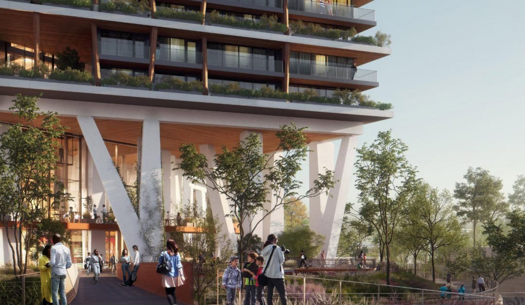 Binanın ilk ve en alt kısmı, 3.3 dönümlük alanın uzunluğunu kapsayan ve 24.000 fit kare halka açık perakende ve restorana ev sahipliği yapacak bir pavyon inşa edilecek.Nehirden korunan bir taşkın yatağı ile ayrılır ve taban seviyelerinin çoğu payandalarla yerden 30 fit yükseltiliyor.