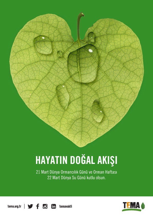 TEMA Vakfı bu yıl 21 Mart Dünya Ormancılık Günü ve Orman Haftası ile 22 Mart Dünya Su Günü’nü iklim, toprak, su ilişkisine ve ormanların yaşamsal önemine dikkat çekerek kutluyor. TEMA Vakfı gönüllüleri bu kapsamda fidan dikimi ve bakımı, Su Zinciri Farkındalık Yürüyüşü, tanıtım ve bilgilendirme stantları, belgesel gösterimleri ile eğitim etkinlikleri düzenliyor. Gönüllüler, farklı şehirlerde etkinlikler gerçekleştirerek yaşamın temel kaynağı su ile orman ekosistemlerinin önemine dikkat çekiyor. Ayrıca TEMA Vakfı, Türkiye Su Varlıklarına Yönelik Tehditler Haritası’nın güncellenmesi için destek çağrısında bulunuyor.