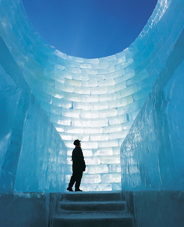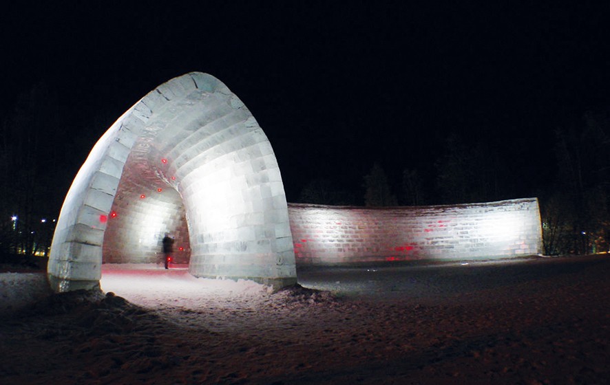 Gün batımından sonra adeta kar ve buz kaybolur, yerini rengarenk aydınlatılmış buz mimarisine bırakır. Buzun saf beyazlığı ise renkli aydınlatmalar için mükemmel bir tuval görevi görür. Sayısız doğrusal aydınlatma armatürleri ile mimaride muhteşem grafikler oluşturulur.