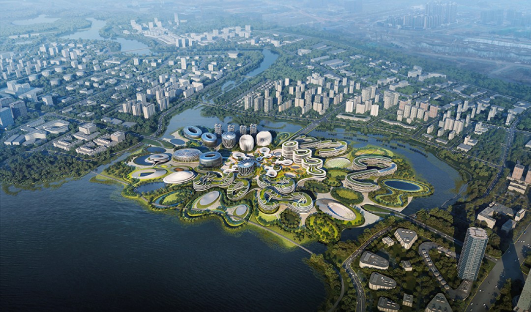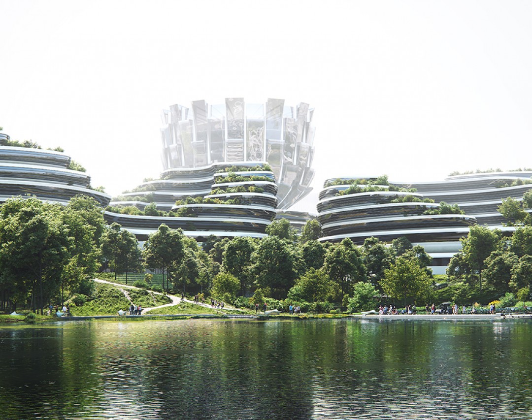 Yeni nesil bilgi teknolojileri, akıllı üretim, dijital eğlence ve yeni enerjiye odaklanan kentin güneyindeki Tianfu Yeni Bölgesi, Çin’in teknoloji ve araştırma sektörleri için ekolojik olarak sürdürülebilir halka açık bir yerleşim ve iş merkezi olarak geliştiriliyor. Tianfu Yeni Bölgesi’ndeki 67 hektarlık Unicorn Island imar planı, Çin’in dijital ekonomisinin sürekli büyümesini destekleyerek Çinli ve uluslararası şirketler için yaşam ve çalışma ortamları yaratmayı hedefliyor. 70.000 araştırmacı, ofis personeli, bölge sakinleri ve ziyaretçiler için karma kullanımlı bir proje olan Unicorn Island, topluluğunun refahını artırmak için tasarlanmış ve projenin tasarımı bölgenin tarihi doğal mühendislik projelerindeki ilkelerden etkilenmiş. 2.300 yıl önce Chengdu’nun kuzeybatısında inşa edilen Min nehri üzerindeki Dujiangyan sulama sistemi, 2000 yılında UNESCO dünya mirası alanı seçildi. Bu eski su idare sistemi, nehrin doğal güçlerini Chengdu ovasını sulamak için düzenleyip, Çin’deki en verimli tarım arazilerinden bazılarının ortaya çıkmasını sağlamış ve bölgeyi selden korumuş.