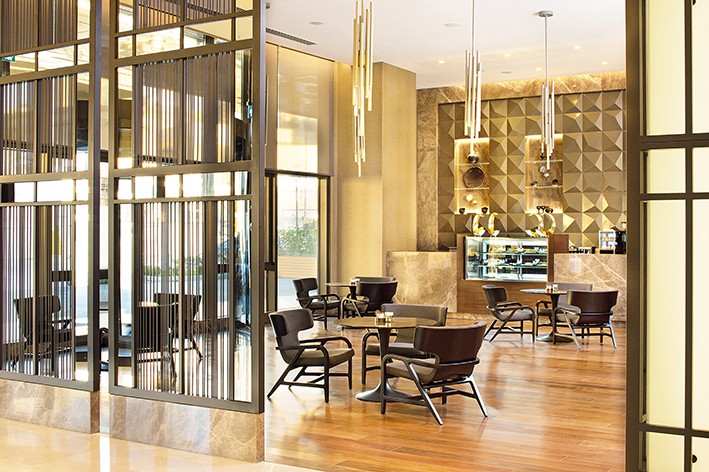 Mekanlarının şık ve konforlu olmasına özen gösterilen otelin girişinde yer alan kafede Poltrano Frau marka koltuklar, ala carte restoranın zemininde ve kolonlarında özel kesim doğal taş paneller kullanıldı. Mekan içinde metal ve deri kullanılarak özel paneller ve ayırıcı seperasyonlar tasarlandı. Aksının sonunda yer alan barın eğrisel oturma alanında özel kesim ayna ve ahşap kullanıldı.