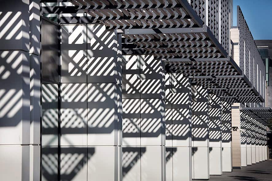 Her iki bina da podyum kütlesi üzerine oturmaktadır. Podyum katlarının yol cephesinde ticari üniteler yer alırken, avluya ve arka tarafa bakan yatay ofisler modüler planlamanın esnekliğine sahiptir.Uzun podyum cepheleri tasarlanırken en uygun taşıyıcı sistem modülü belirlenmiş ve bu modüllerin içinde belli noktalarda geriye çekilen blok girişleri entegre edilmiştir. Cephede istenilen hareketin yansıtılabilmesi için metal güneş kırıcılardan oluşan bir sistem tasarlanarak, düşeydeki elemanların devamında oluşan yatay saçak insan ölçeğinde mekân kurgusu oluşturmaya yardımcı olmuştur. Podyum bazası içinde ana giriş lobileri ile ilişkili büyük atriumlar yaratılmış, bu atriumlar vasıtası ile yatay ofislerin ihtiyacı olan gün ışığı ve yeşil donatı alanları bir araya getirilmiştir.