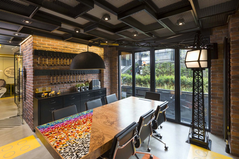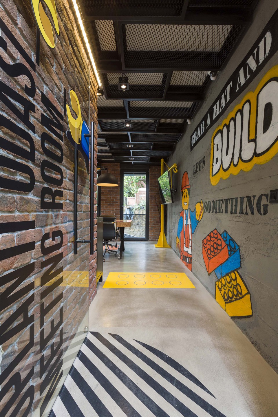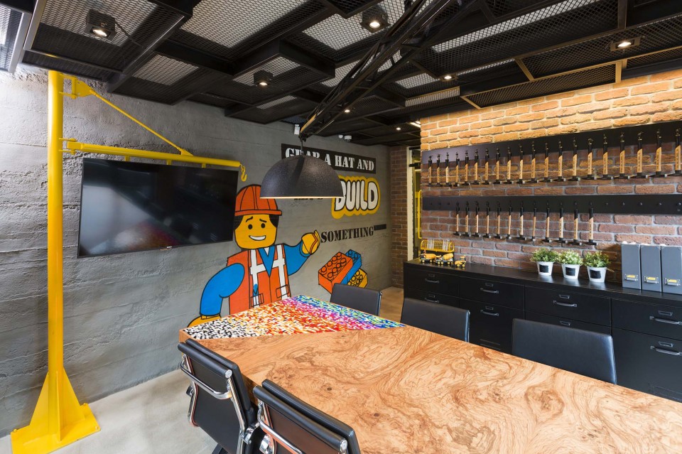 Projenin en dikkat çekici noktalarından biri hiç şüphesiz ki toplantı odası tasarımında Lego Filmi’nin esin kaynağı olduğu detaylar ve bu detaylarla tuğla ile lego fonksiyonlarının eşitliğinin vurgulanmasıdır. Filmin ana mottosu olan ‘grab a hat lets build something’ firmanın temel görüşü ve sloganı haline gelmiştir. Toplantı masasının bir bölümü orijinal legolardan üretilirken, filme bir diğer atıf ise ayağı vinç formunda tasarlanan ve özel olarak üretilen aydınlatma elemanı ile yapılmıştır.
