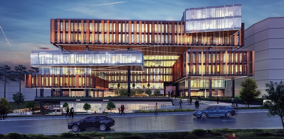 Zemin katlarda ticaret, üst katlarda ise ofis yapılarının yer aldığı proje, tüm birimlerde doğal aydınlatma ve iklimlendirmeye olanak sağlayan bir avluya sahiptir.