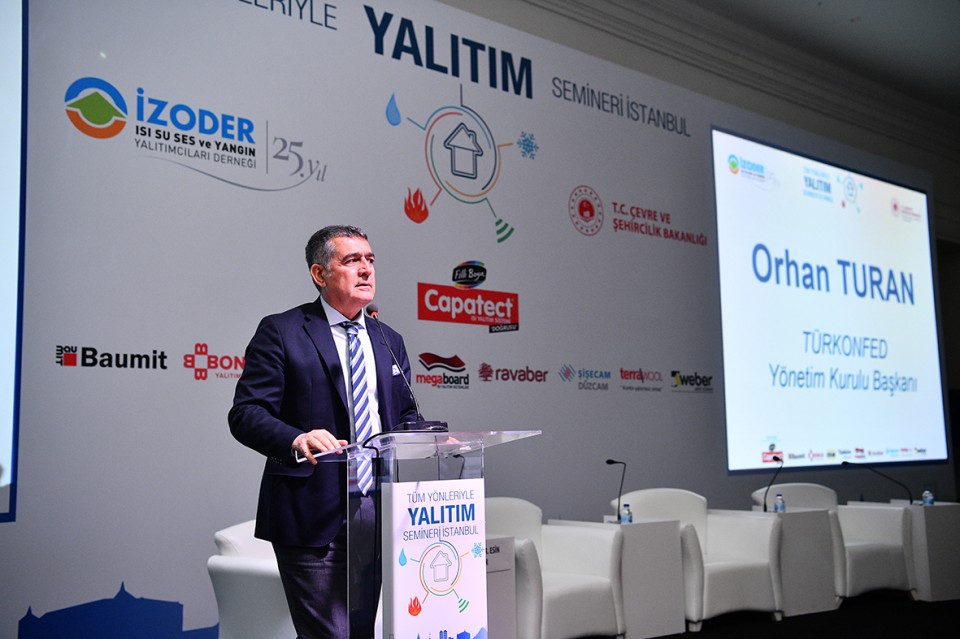 TÜRKONFED (Türk Girişim ve İş Dünyası Konfederasyonu) Yönetim Kurulu Başkanı Orhan Turan ise şunları söyledi: “İZODER’in kurucularından biri olarak geçtiğimiz yıllarda şunu gördüm; “Biz yalıtımı, enerji verimliliği ve tasarrufu vurgulayarak 2000’lere kadar mühendislere anlatmaya çalıştık, 2001 krizinden sonra da yalıtımı finansçılar konuşmaya başladı. Bence yalıtımı halka mal etmemiz gerekiyor.