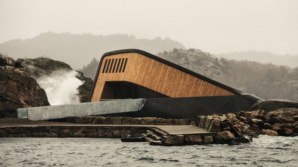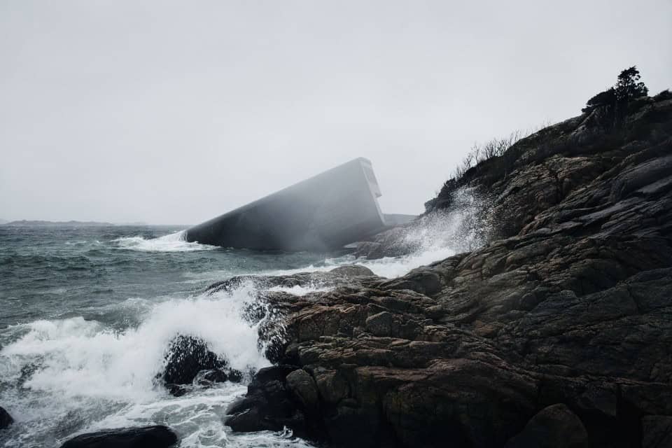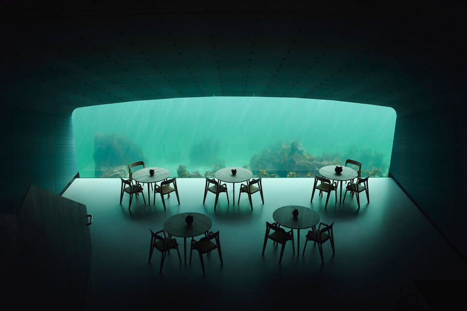 Snøhetta’nın tasarladığı, Avrupa’nın ilk su altı restoranı olan Under (Aşağıda) Norveç kıyı hattının en güney ucunda yer alıyor. Barındırdığı eşsiz restoran deneyiminin yanı sıra deniz yaşamı için bir araştırma merkezi görevi de görecek olan yapı, deniz ve kara hayvanları için yeni bir yaşam alanı yaratmayı hedefliyor.
