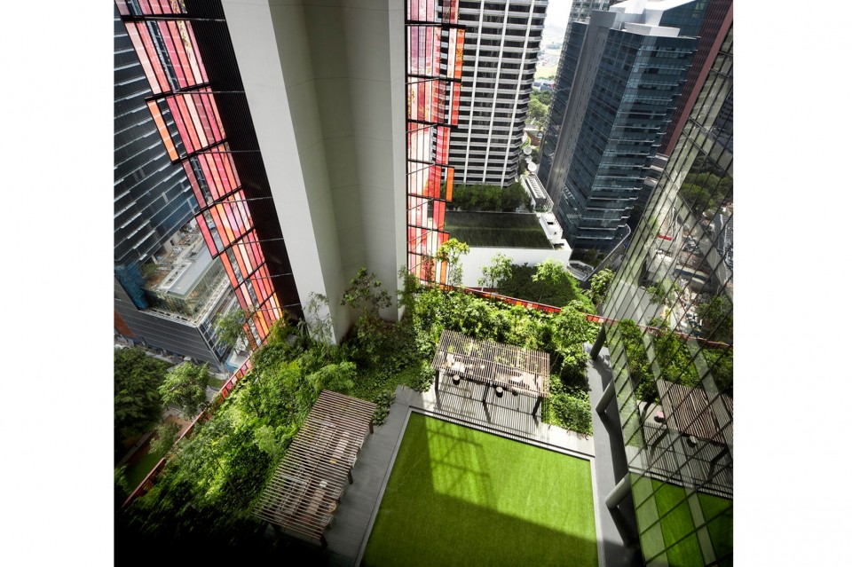 WOHA, farklı ofis, otel ve kulüpler için her biri kendi bahçesine sahip bir dizi katman oluşturdu. Ek zemin seviyelerinden oluşan bu katmanlar, şehrin yüksek yoğunluklu konumuna rağmen yüksek binalar boyunca rekreasyon ve sosyal etkileşim için kamusal alan kullanımlarına izin vermekte.