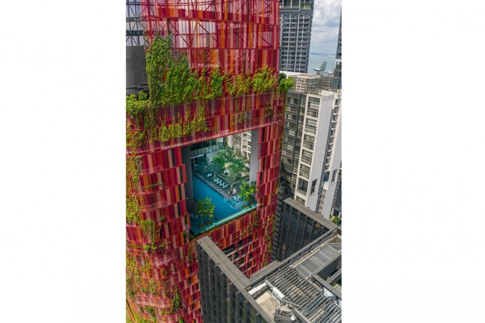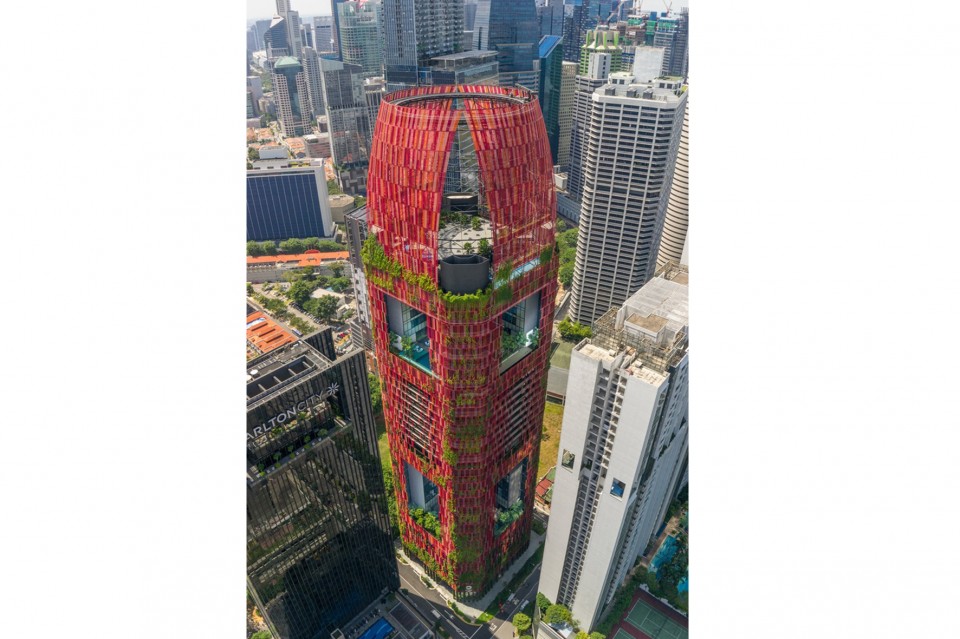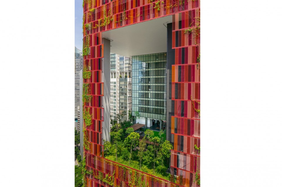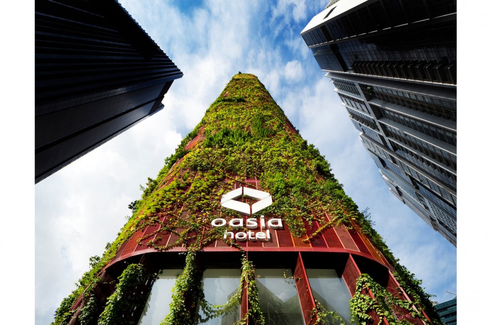 Singapur’un yoğun Merkezi İş Bölgesi’nin ( CBD ) kalbinde yer alan yemyeşil bir kule olan Oasia Hotel Downtown, kentsel tropik alanlar için arazi kullanım yoğunluğunun bir prototipidir.