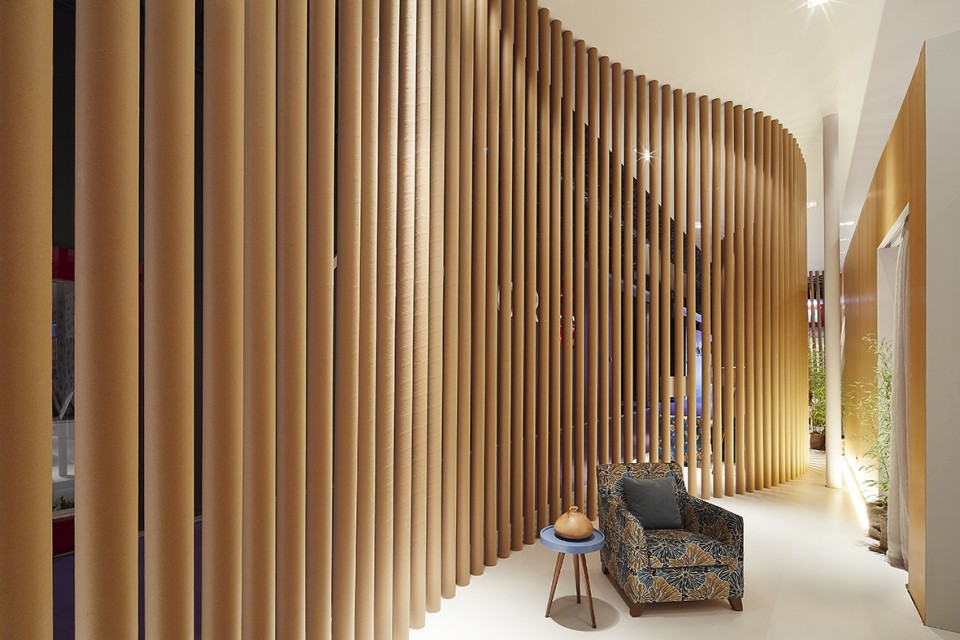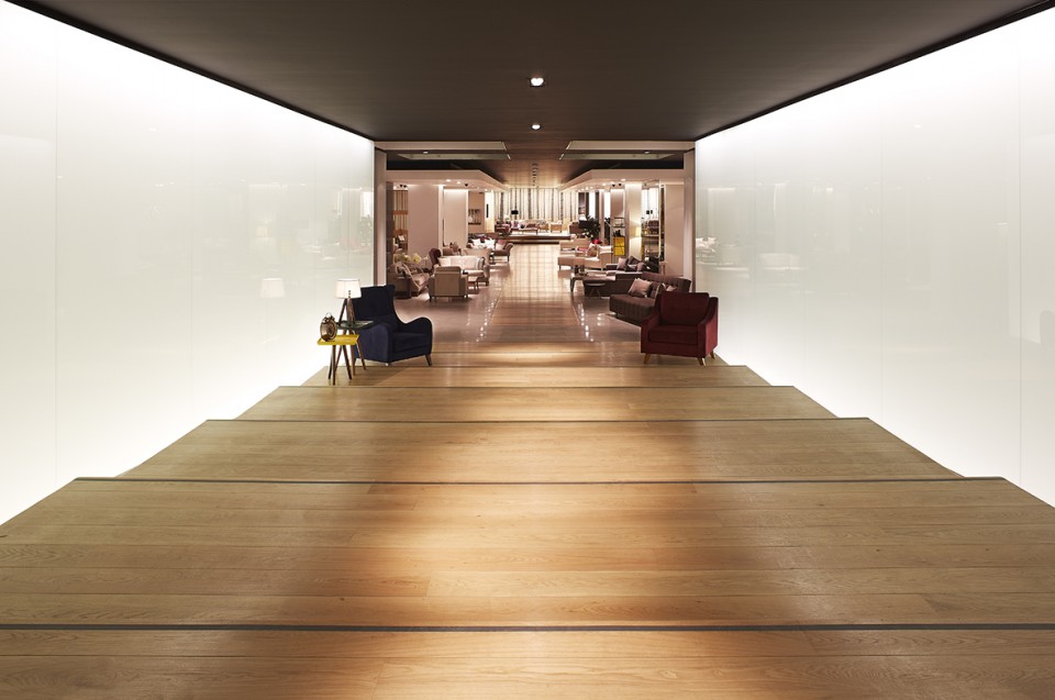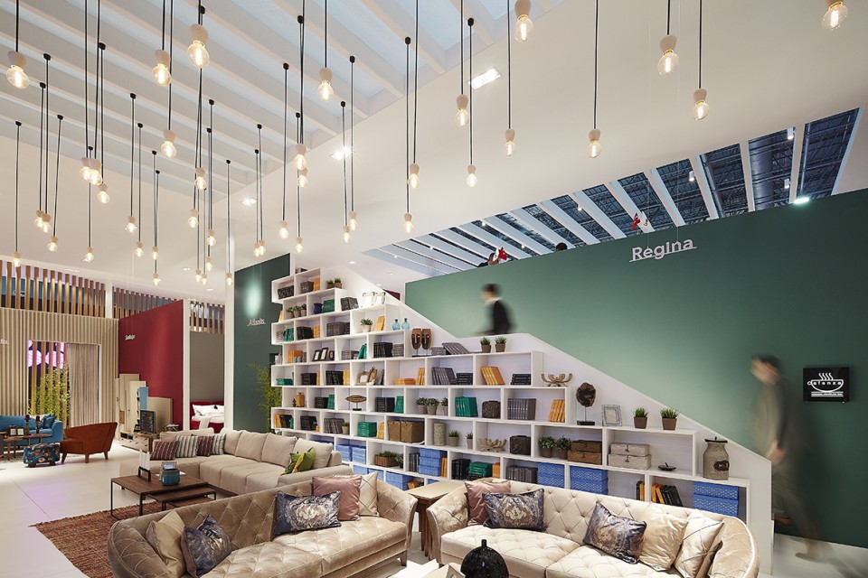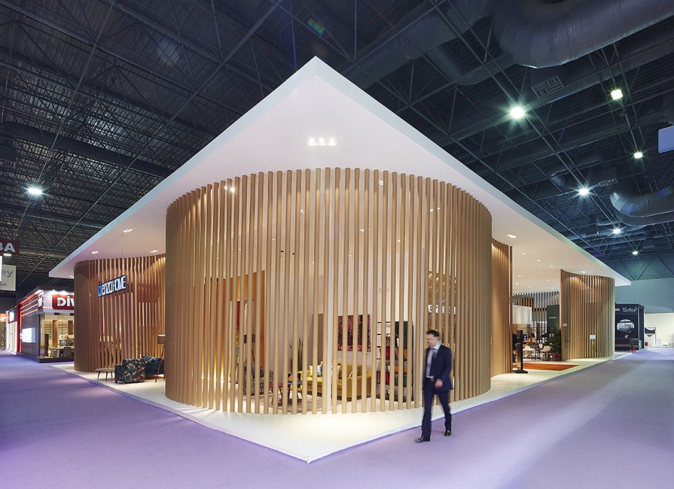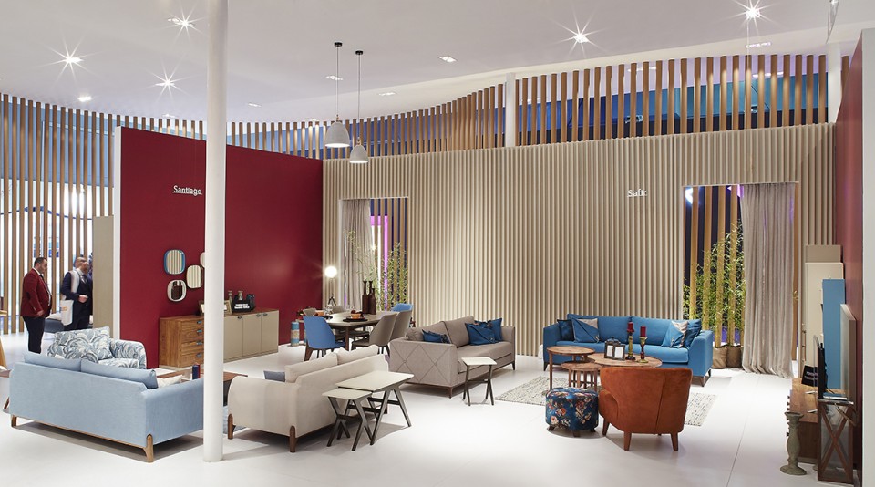 Her bir koleksiyonun salon, yemek ve yatak odasından oluşan bir ‘ev’ bütünlüğü içinde sergilenmesini sağlayan Yerce Mimarlık, seperasyonları ayırdıkları mekanlar arasındaki algıyı tamamen kopartmayacak şekilde konumlandırmış. Bunun devamında koleksiyonlar arası mekan geçişlerinin de yumuşak ve dengeli olması sağlanarak hem kendi içlerinde hem de bu parçaların oluşturduğu bütünde akışkan mekanların ortaya çıkarılması sağlanmış. Buna ek olarak mobilyanın kendisini daha iyi ifade etmesi için mimari detaylar oldukça sadeleştirilerek renk çalışmalarına ve aydınlatma tasarımına bu doğrultuda yön verilmiş. Ürünlerin sergilendiği birimler arasında gezerken ara geçişlerde bazen mekansal sürprizlere de yer verilmiş.