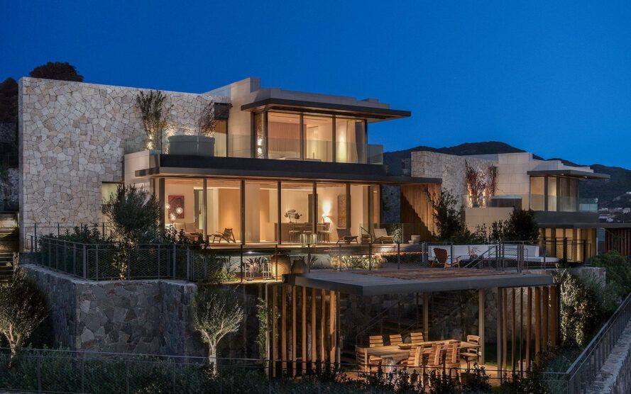 Mülk, muhteşem Ege Denizi ile çevrili bir sahil tatil kasabasında 126.000 metrekarelik özel bir yarımada üzerinde kuruludur ve bölgedeki ilk müstakil konutlara sahiptir. Tasarımcılara göre, genel estetik “geleneksel anadilin çağdaş bir yorumu”. Tasarımı, kaleleri ve müzeleriyle tanınan bölgenin mimari ve çevresel özellikleriyle uyumlu hale getirmeyi umuyorlardı. Kurgulanan plan, ulaşımdan kaynaklanan emisyonları azaltmak için şantiyeden çıkarılan özel malzemeleri kullanmak üzerine ilerletildi. Ekip, özellikle inşaat için sahadan taş kullandı ve açık yeşil alanlarda yerel bitkileri tercih etti.
