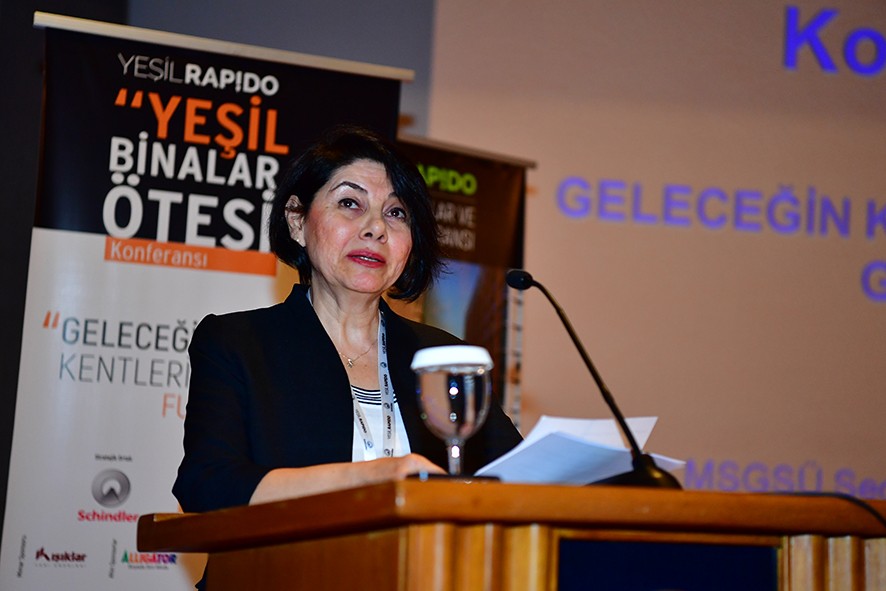 MSGSÜ Mimarlık Fakültesi Dekanı Prof.Dr.Sema Ergönül de konuşmasında “Günümüzde hızlı kentleşmeyle tüm kentler birbirine benzemeye başladı. Kentlerimizi yeniden yapılandırmamız, tüm boyutlarıyla sürdürülebilir kılmamız bizim en önemli görevimizdir” dedi ve fakültenin bu alandaki projelerinden bahsetti.