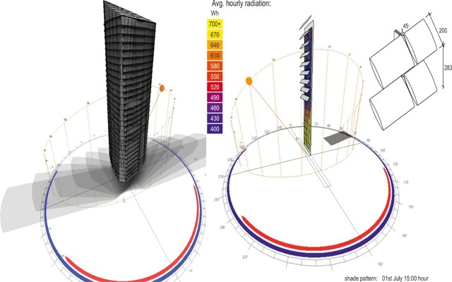 Örneğin çalışılan bir projemizden referans vererek anlatmak gerekir ise; cam ve alüminyum cepheli bu yüksek yapıda güncel yerel standartlara uygun iklimsel performans kriterlerini sağlayan bir cephe sistemi ile biraz daha yüksek gölgeleme ile ısıl yalıtım değerlerini sağlayan bir sistemin ilk yatırım maliyeti yüzde 20 civarında fark etmektedir.Yaklaşık 25.000 m2 cephe dikkate alınarak bu farkın ilk yatırımdan geri kazanımı güncel enerji bedelleri ile 20 yılı bulmaktadır.