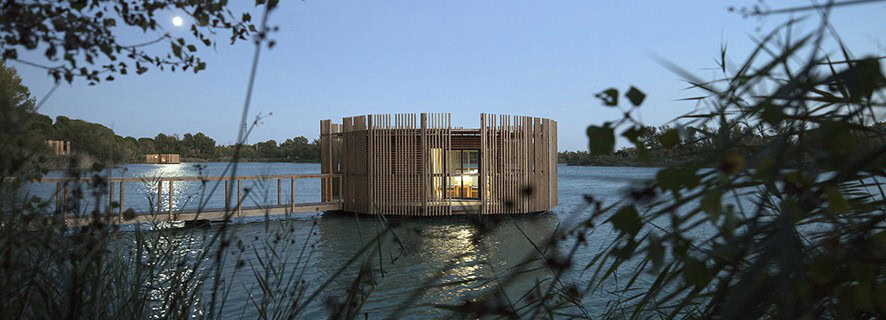Fransa, Avignon şehrinin yakınındaki deniz rezervinde yer alan otel su üzerinde yüzen bir dizi yapı içeren eko-otel olarak tasarlandı. Atelier Lavit tasarladıkları bu eko-otel yapı dizileriyle doğal yapısı bozulmamış bölgede korunaklı ahşap kamuflajlarla doğallığa katkı yapmışlar.