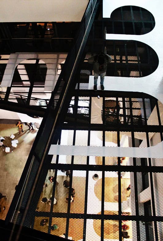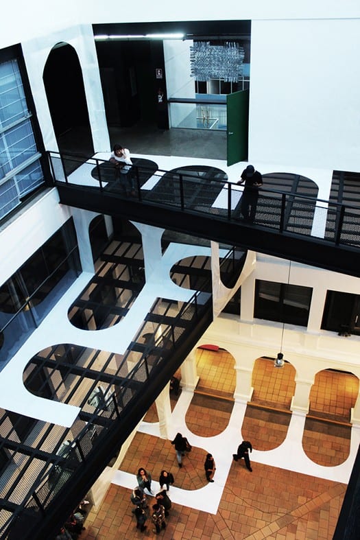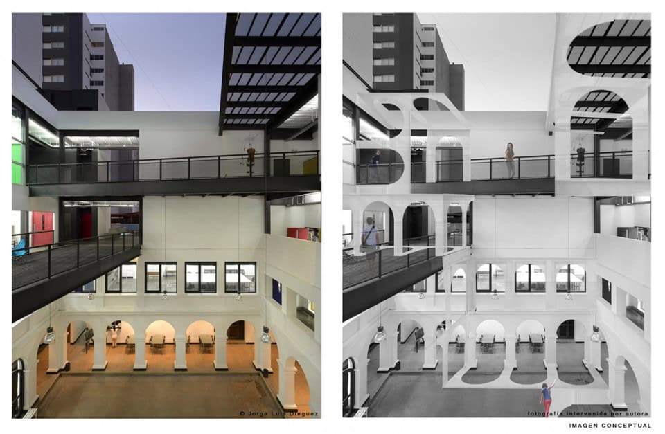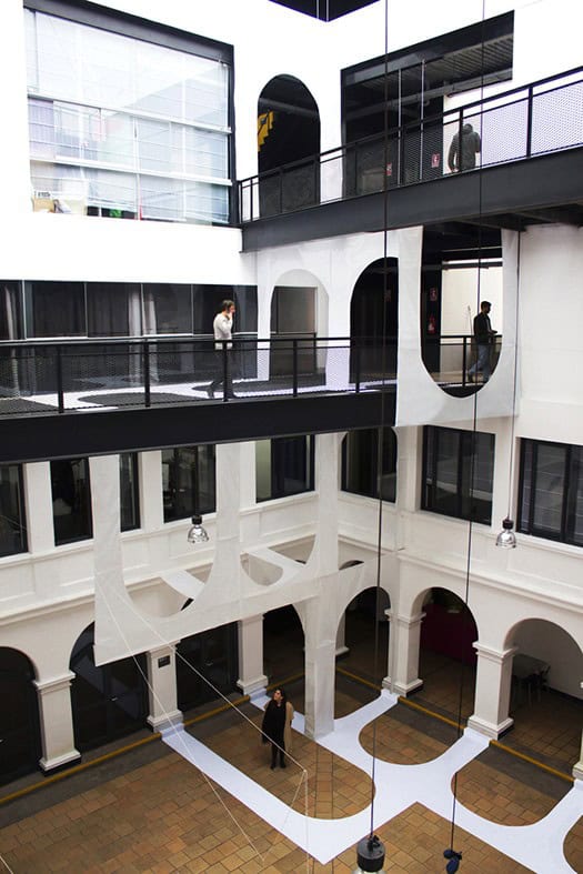 Peru’daki Corriente Alterna Sanat Okulu’nun yıl dönümünde yer alan ‘’zamansal- mekansal bozulma’’ adlı kurulum, mekanın tarihsel mimari dinamiklerinin geliştirilerek çağdaş yapıda yer alması için oluşturuldu.