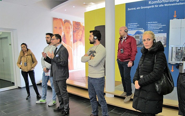 Zehnder Academi’de gerçekleştirilen eğitimde; maksimum enerji verimliliği sağlayan sistemlerin %40 enerji tasarrufu sağladığından, maximum 120 dereceye kadar çıkarak insanları bunaltmadan kaliteli sıcaklık ortamı yarattığından, ışınım ile ısı transferi ve tüm hacimde homojen ısı dağılımı sağlayan sistemin işleyişinden bahsedildi. Yüzlerce Mercedes aracın teşhir edildiği Granichen satış galerisinde, Zehnder’in hayata geçirdiği radyant tavan ısıtma sistemini de yakından inceleme fırsatını bulan konuklar, radyant tavan ısıtma sistemlerinin fonksiyon ve rahatlığını birebir yaşama fırsatını buldular. Ürünlere titizlikle uygulanan her bir testi görme şansı yakalayan katılımcılar, ürünlerin son derece avantajlı ve kullanıcı dostu olduğunu birebir görüp, deneyimlemiş oldu.