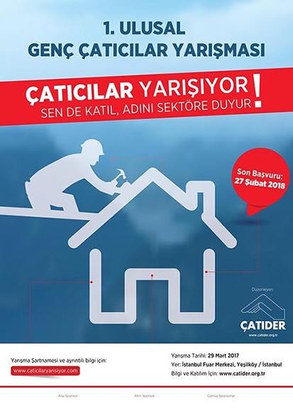 Çatı Sanayici ve İş Adamları Derneği (ÇATIDER) tarafından düzenlenen 1. Ulusal Genç Çatıcılar Yarışması'nın son başvuru tarihi 27 Şubat 2018.