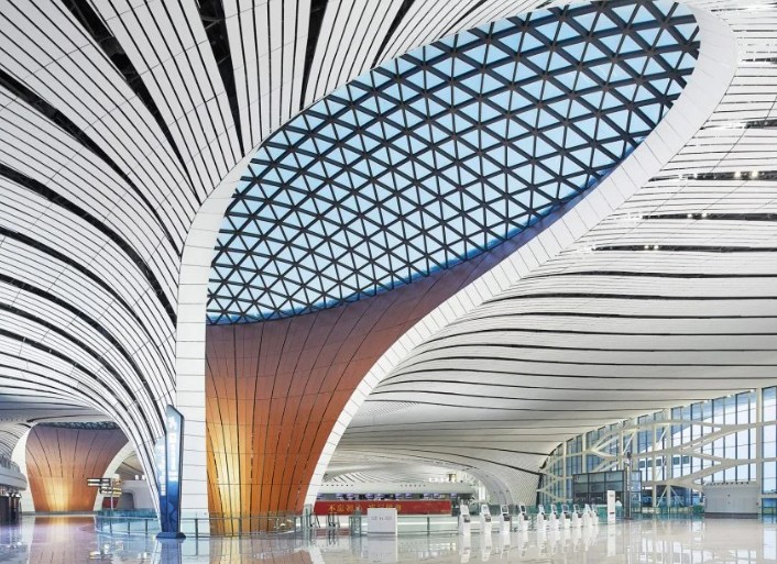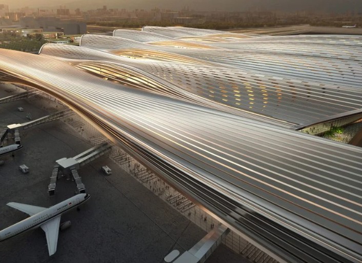 Sürdürülebilir hava alanı tasarımı Zaha Hadid tarafından uzman firma ADPI ile işbirliği içinde tasarlanan, 2019 yılında tamamlanan deniz yıldızı şeklindeki Pekin Daxing Uluslararası Havalimanı, 700.000 metrekarelik alanıyla dünyanın en büyük havalimanlarından biri.Güneş panelleri ile çalışır ve atık ısıyı geri kazanmak için toprak pompaları kullanıyor. Yağmur suyu toplama sistemi ile donatıldı.