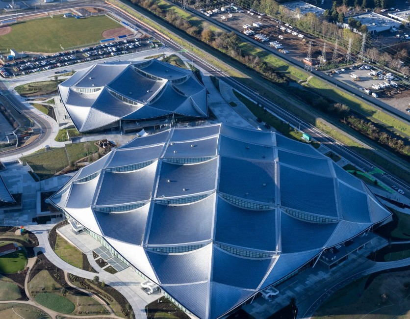 Google'ın Bay View kampüsünün çatısını "Ejderha ölçeğinde güneş kaplamaları" oluşturuyor ve yakın zamanda BIG ve Heatherwick Studios tarafından Silikon Vadisi'nde tamamlandı. Dalgalı yapı, yaklaşık 7 megawatt enerji üreten 50.000 güneş panelinden oluşuyor. Bu binanın toplam enerji ihtiyacının %40'ına denktir.