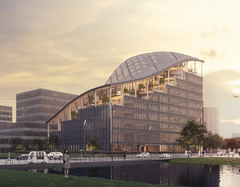 MVRDV, Şanghay tarım şirketi LAD için şu anda geliştirilmekte olan bu ofis binasını tasarlarken geleneksel güneş çatısını yeniden tasarladı. Kavisli çatı yapısının bir tarafı açık kalırken diğer tarafı güneş panelleri ile kaplanarak binaya yenilenebilir enerji sağlanıyor ve operasyonel karbon ayak izi minimuma indiriliyor.