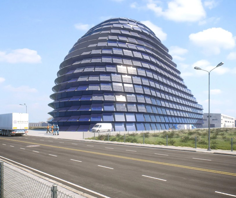 Stüdyo, gün boyunca mevcut olan güneş ışığı miktarını en üst düzeye çıkarmak için cephenin soğanlı şeklini tasarladı ve binayı kendi kendine yeterli hale getirmek için yeterli enerjiyi üretti.
