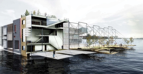 Şehrin kanallarının sırasında dizilmiş evlerin büyük “ekran pencereleri” geçenleri suya yaptığı yansımalarla hayran bırakıyor,bu sırada da yaşayanlarla tecrübelerini paylaşmalarını sağlıyor.