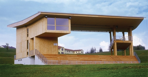 Bu amaçla tasarlanan binanın 3 boyutlu yapısı, işlevsellik ve ışınsal olarak farklı görüşlerin çeşitliliğini sunmasının yanı sıra arazi ile yüzme gölüne doğru bakan sahneyi çevre ile birleştiriyor. Sahne prefabrike betondan bir bodrum kat üzerine yapılmış, buraya giriş gizlenmiş ve sanatçılar için bir kulis, duşlar, bir ilkyardım odası, teknik aletler için bir oda ve depo odaları konulmuş.