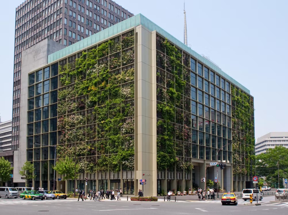 Sürdürülebilir mimari projelerden dokuz katlı ofis binası, kapaklı yeşil bir cepheye ve 200 çeşit meyve, sebze ve pirincin hasat edildiği ve sahada servis edildiği 43.000 metrekarelik bir kentsel tarım tesisine sahip. Ana lobide ayrıca çeltik ve brokoli tarlası var.