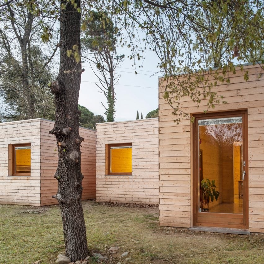 Casa GG, Barselona yakınlarındaki, çevredeki kırsaldan toplanan geri kazanılmış ladin ağacıyla kaplı prefabrik bir pasif evdir. Sadece dört ayda inşa edildi. Ev altı modüle bölünmüş ve Alventosa Morell Arquitectes, güneş ısısı kazanımını en üst düzeye çıkarmak için güneş yörüngesi göre inşa etmiş. Enerji tasarrufu sağlayan kabuk sayesinde, tek bir radyatör soğuk aylarda ısıtma sağlıyor.