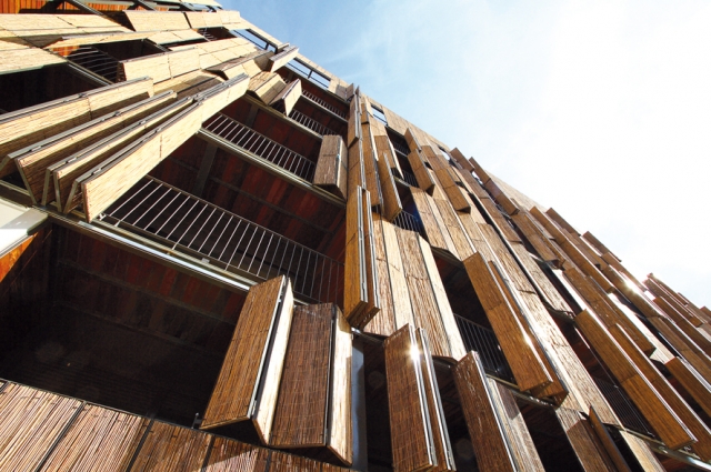 Foreign Office Mimarlık’ın İspanya’daki bu projesinde en dikkat çeken unsur, saz kamışının kullanımıdır. Bunun iki ana nedeni vardır; birincisi, saz kamışı malzeme olarak doğa dostudur, ikincisi estetik bir dokusu vardır. Binanın cephesi, katlanabilir çerçeve üzerine monte edilmiş saz kamışı panjurdandır. Birimler, tüp benzeri iç mekanları sayesinde, farklı şekillerde ve boyutlarda, doğu-batı yönünde çift taraflı erişime sahiptirler. Ayrıca doğu tarafındaki özel bir bahçeye erişim vardır. Panjur, yakan yaz güneşinden korumakla beraber, her birimde yaşayan kişinin kendi kontrolünde olduğu için güvenliği de artırmaktadır.