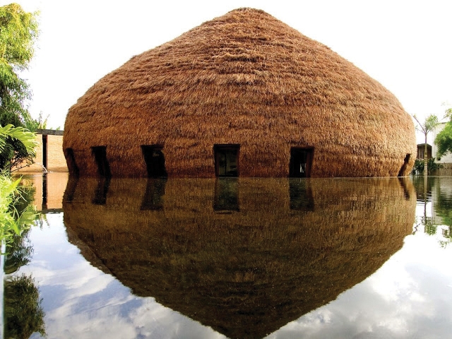 Bambu kemer sistemi kubbe için tasarlanmıştır. 10 metre yüksekte ve 15 m açıklıktadır. Ana çerçeve, her biri birkaç tane bambu elemanın birleştirilmesinden oluşmuş, 48 prefabrike birimden oluşur. Yapı, gölden gelen doğal rüzgar enerjisini ve soğuk suyu doğal havalandırma yaratmak için kullanır. Çatının tepesinde, iç mekandan sıcak havanın tahliyesinin yapılabilmesi için, 1.5 metre çapında bir delik bulunur. Binanın kullanım amacı bar olsa da benzersizdir ve şehrin kentsel peyzajında bir simge haline gelmiştir. Yapı, hem modernizmi hem de gelenekleri simgeler. Bina doğayla bir uyum içerisindedir ve malzemesinin doğası gereği zamanla toprağa geri dönecektir.