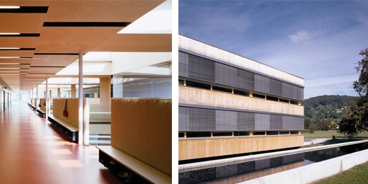 Dolayısıyla “Klaus”, insan ve çevre sağlığına dünyanın en duyarlı yörelerinden biri olan Vorarlberg’de, yine bütüncül yaklaşıma örnek olan bir okul binası olarak dikkati çekmekte. Yörede çok yaygın ve olağan proje yarışmacılığı burada da uygulanmış ve kazanan Dietrich / Untertrifaller mimalık bürosunun tasarım çalışması 18 aylık inşaat süresinde gerçekleştirilmiş. Voralberg yapı yönetmelikleri uyarınca bina yılda maksimum 15 kWh/m² enerji harcıyor. İnce yapı detayları bunu karşılayacak şekilde tasarımlanmış ve pasif iklimlendirme koşulları sağlanmış.