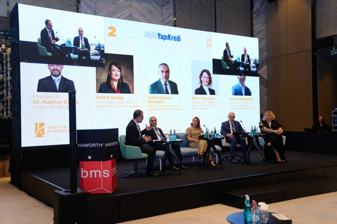 Escarus Genel Müdürü Dr. Kubilay Kavak’ın moderatörlüğünü üstlendiği “Temiz enerjiye geçiş ve finansal kaynak yaratmak” başlıklı oturumda enerji dönüşümü yatırım danışmanı ve sosyal girişimci Sedef Budak, Elektrik Dağıtım Hizmetleri Derneği (Elder) Genel Sekreteri Fakir Hüseyin Erdoğan, Enerjisa Enerji Sürdürülebilirlik ve Kurumsal Yetkinlikler Bölüm Başkanı Ebru Taşcıoğlu ve Avrupa İmar ve Kalkınma Bankası (EBRD) Türkiye ve Kafkasya Enerji Bölge Başkanı David Managadze yenilenebilir enerji yatırımları ve temiz enerji teknolojileri alanında konuşma yaptı.