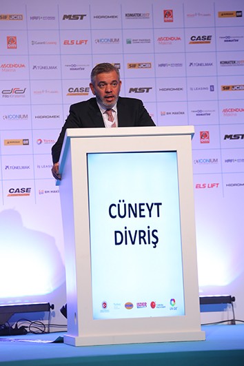 2. Uluslararası İş Makinaları Kongresi Başkanı Cüneyt Divriş, kongrede yaptığı konuşmada şunları söyledi: “Tekerleğin icadından bu yana insanoğlunun doğayı kendi ihtiyacı doğrultusunda yapılandırma süreci hiç sonlanmadı. Yollar, köprüler, su kemerleri, binalar ve birçokları. Bu serüven iş makinası teknolojisinde sağlanan ilerleme ile yıllar boyutundan aylar boyutuna inmiştir. İş makinası, görünen yüzü ile genelde yıkıcı özellikleriyle ön plana çıkmış, bir nevi toplumun gözünde çevreye verilen tahribatın sorumlusu olarak görülmüştür. Bir insan yapısı olan iş makinaları gücü temsil eder ve yine insanın elinde nasıl kullanıldığına bağlı olarak asgari seviyede doğal tahribata yol açarak insanlığın gelişimine katkı sunar. İşte bu amaçla 2. Uluslararası İş Makinaları Kongremizin temasını ‘sürdürülebilir bir gelecek için iş makinası’ olarak belirledik.”