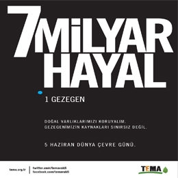 Birleşmiş Milletler, 5 Haziran Dünya Çevre Günü'nün temasını "7 milyar hayal. Bir gezegen. Sorumlu tüketim" olarak belirledi. Ana teması sürdürülebilir üretim ve tüketim olan Dünya Çevre Günü'nde TEMA Vakfı, tüm üretim sürecinde gezegenin sınırlarını bilmenin ve yapılan her tüketimin doğurduğu çevresel sonuçların farkında olunmasının önemine dikkat çekiyor.