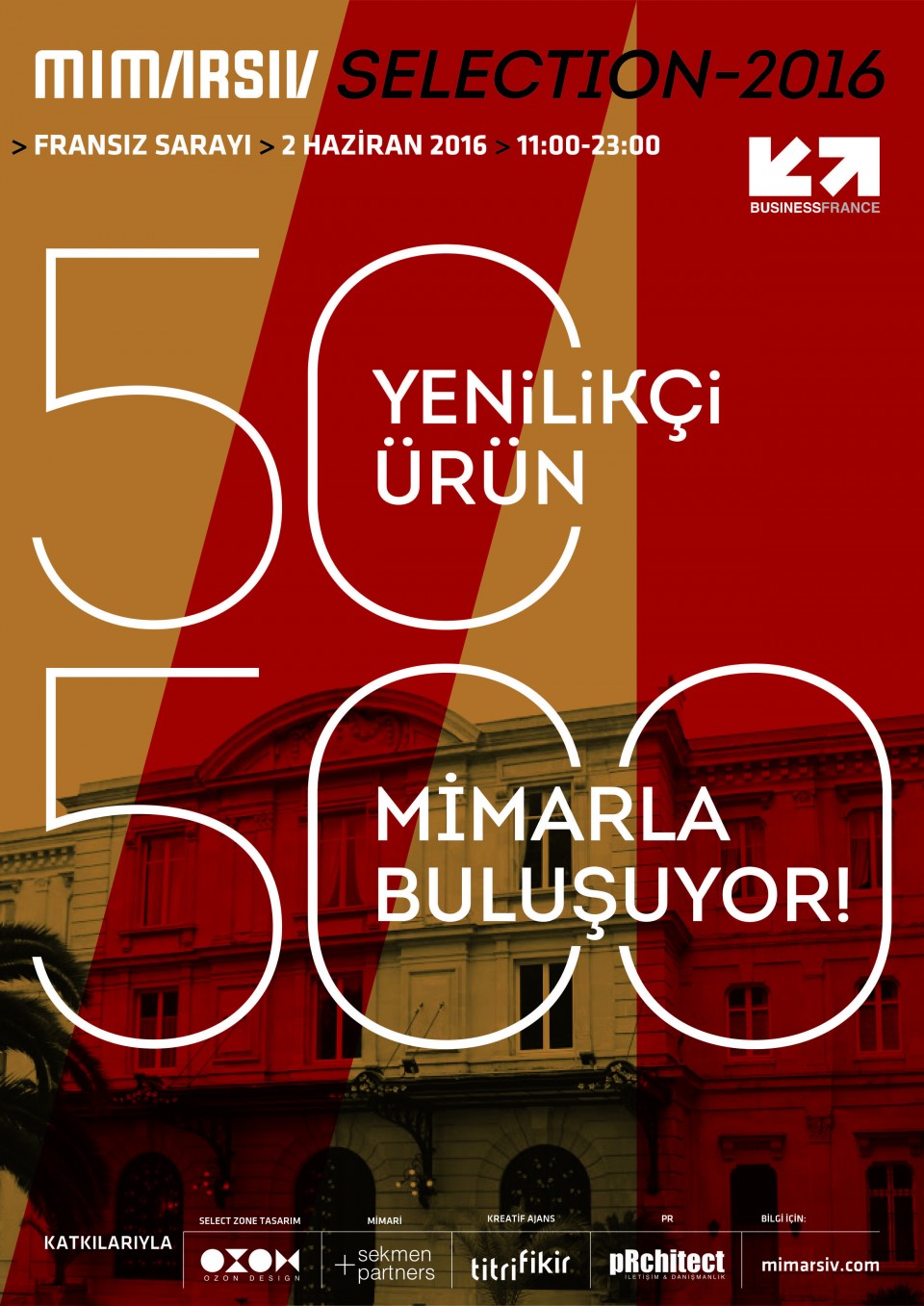 MIMARSIV Selection’da sergilenecek olan markaların ürünleri, Fransız Sarayı’nda, EDIDA 2016 ödüllü İç Mimar Atilla Kuzu ve Mimar Levent Çırpıcı ortaklığındaki Ozon Design tarafından tasarlanan Select Zone modüllerinde konumlandırılacak. Her marka için standart modüllerin oluşturulacağı MIMARSIV Selection’da ürünlerin detay bilgileri için dijital bir ekran da yer alacak.